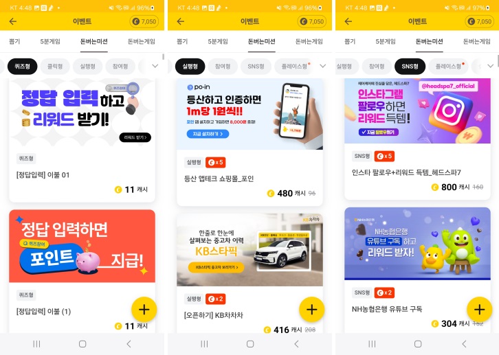 참여 방법도 다른 앱에서 하셨던 것과 똑같습니다. 퀴즈 풀기, 어플 설치하기, 구독이나 팔로우, 가입하기 같은거 말입니다.