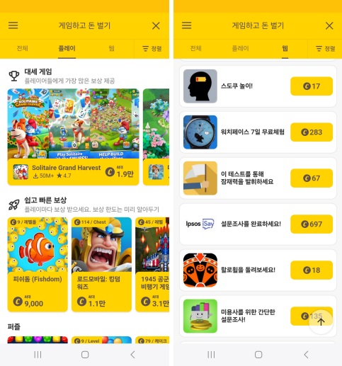 캐시워크는 안드로이드와 iOS에서 이용할 수 있습니다.