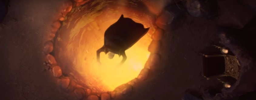 하지만 주인공은 자력으로 탈출하고, 악의 근원을 불구덩이 속으로 밀어 넣습니다.