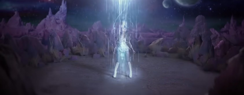 노래가 끝날 때쯤 어떤 문양을 맞추고, 스위치를 올리더니 우주선이 어디론가 차원 이동을 하며 사라집니다.