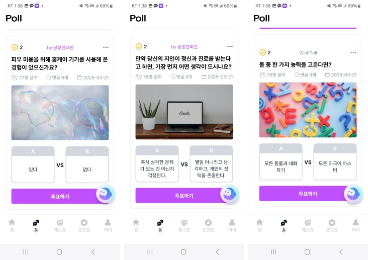 하나의 폴에 참여하는데 3초도 걸리지 않아서 틈나는대로 하기 좋습니다.