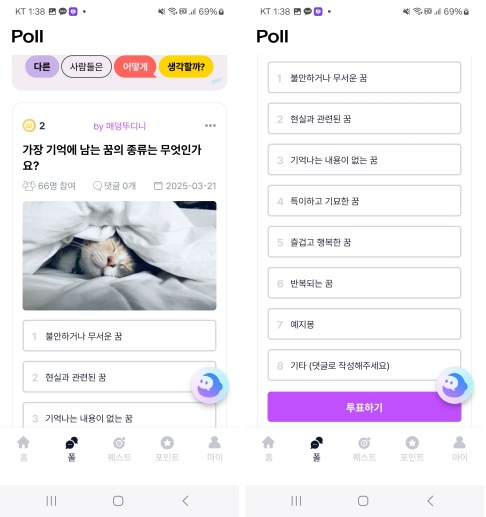 폴(poll)은 터치 한 번만으로 포인트가 적립되는 1문항 설문조사입니다.