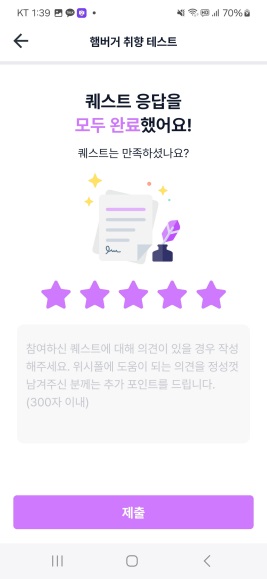 퀘스트를 전부 완료한 후 참여한 퀘스트를 평가하는 화면이 나타나는데요.