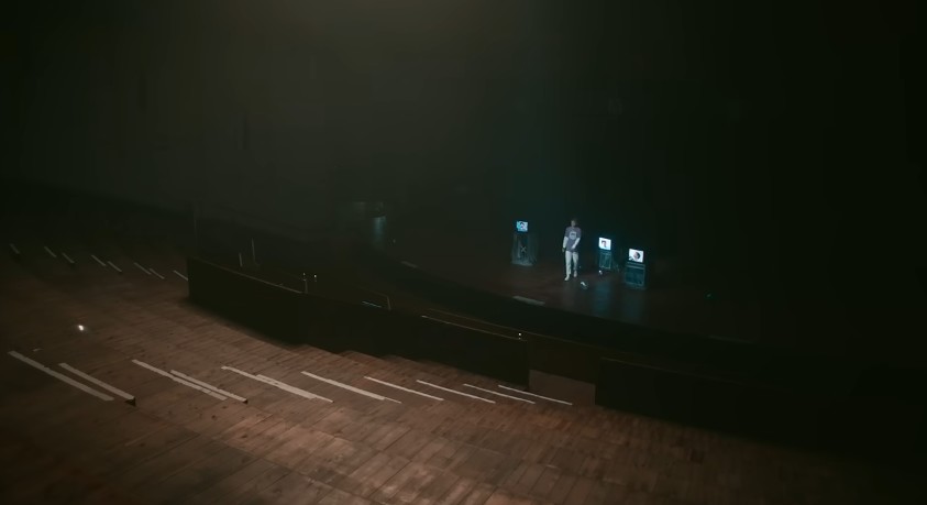 이어서 무대의 불빛들이 켜지지만, 관객석에는 아무도 없습니다.