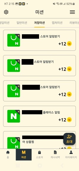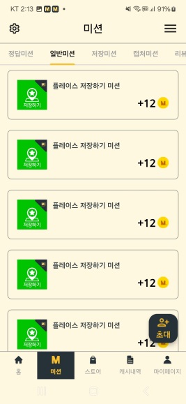 일반미션에는 플레이스 저장하기 미션만 있는 것으로 보입니다. 지금까지 다른 것은 본 적이 없어요.