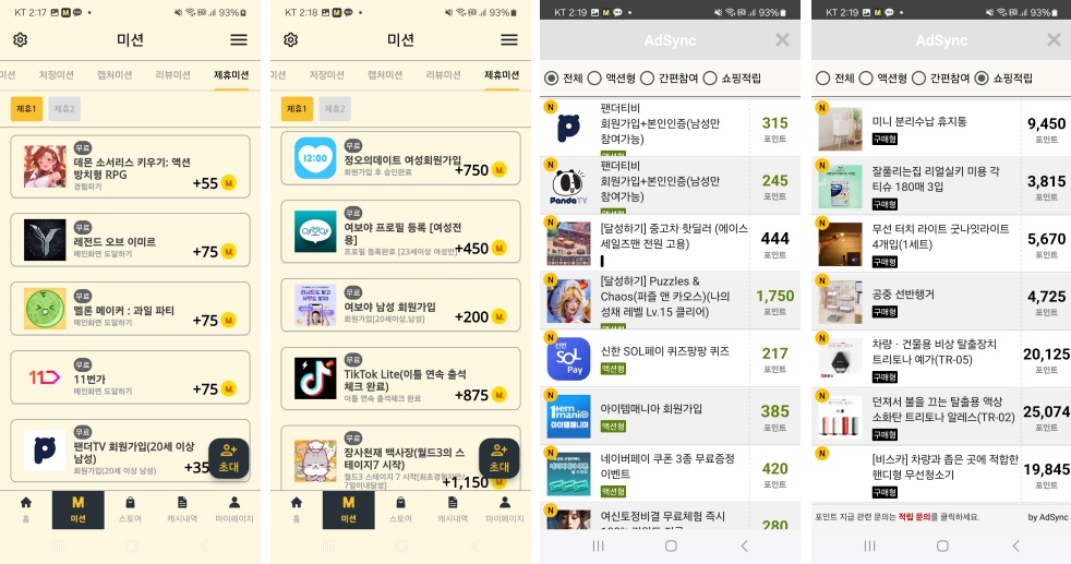 미션을 다해서 더이상 할 것이 없거나, 좀 더 많은 포인트를 얻고 싶거나, 미션만 하기에 조금 질렸다면 제휴미션을 한 번 이용해보시는 것은 어떠신가요?