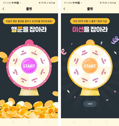 행운 룰렛은 최소 2포인트를 보장하지만, 미션 룰렛은 조건이 까다로운 만큼 최소 10포인트를 보장합니다.