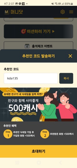 친구를 머니닷에 초대하기만 해도 친구와 나 각각 500포인트씩 받습니다.