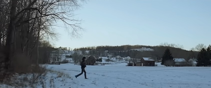 눈밭을 거닐고 있는 한 남자.