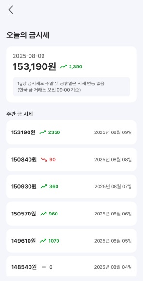 앱 내에서 금시세를 볼 수 있는 기능을 제공하고 있기에, 편리하게 확인할 수 있습니다.