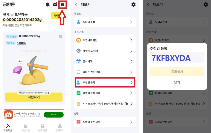 ▶ 금한돈 추천인(초대코드) 입력 방법