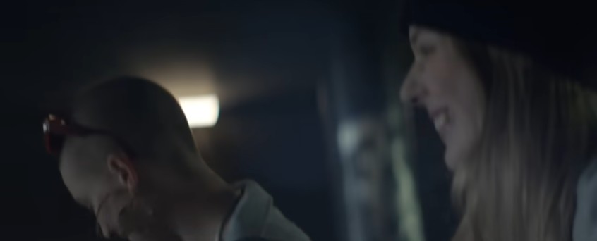 이 노래의 가수 엘리 골딩이 다리 아래에서 차를 멈춥니다.